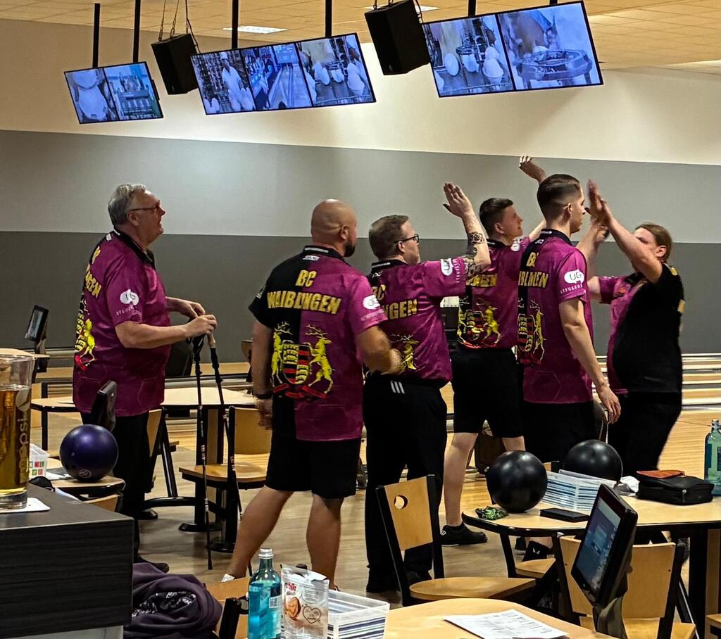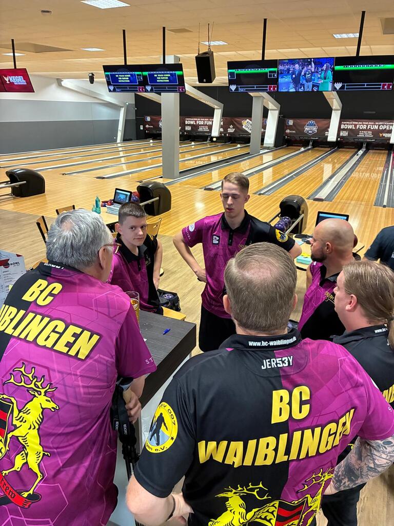 Unser Bundesliga-Team reiste hochmotiviert nach Düsseldorf, um gegen LOK Stockum anzutreten. Die Mannschaft bestand aus Stephan, Chris, Daniel, Marcel und Robin; Ersatzspieler standen diesmal leider nicht zur Verfügung, da Florian und Tyler aufgrund von Terminüberschneidungen verhindert waren. Bereits in der ersten Runde sicherte sich das Team zwei Siege in den Doppeln. In den folgenden Partien blieben die erhofften Punkte jedoch aus. LOK Stockum konnte auf dem sehr kurzen Ölbild seinen Heimvorteil nutzen und gewann drei der vier Baker-Spiele. Auch im Mittagsblock gelang es unserem Team nicht, die erhoffte Wende herbeizuführen. Das 300er-Spiel von Daniel sowie die erzielten Punkte reichten am Ende nicht aus, um für den BC Waiblingen die gewünschten Wertungspunkte zu sichern.